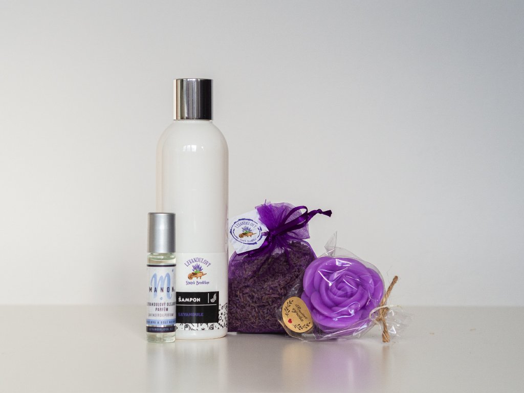 V balíčku najdete levandulový šampon, který jemně čistí vlasy, dodává jim přirozený lesk a zanechává uklidňující vůni levandule. Levandulový parfém je lehký, ženský a dokonale podtrhne vaši osobnost. Dekorační levandulové mýdlo provoní domov i tělo, a pytlíček s BIO sušenou levandulí přinese vůni léta do každé zásuvky či ložnice.