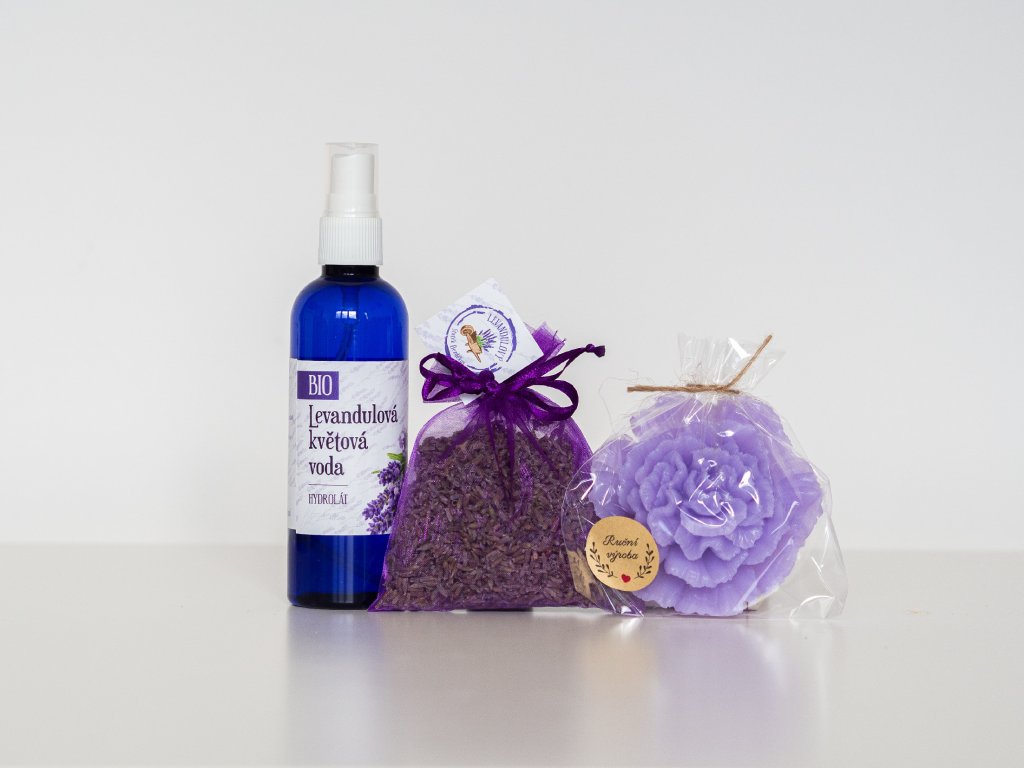 V balíčku najdete levandulovou květovou vodu – 100% přírodní hydrolát, který osvěží vzduch, provoní textilie a zklidní mysl. Dekorační levandulové mýdlo potěší svou jemnou vůní i vzhledem a krásně doplní interiér nebo provoní prádlo. Pytlíček s BIO sušenou levandulí navodí atmosféru klidu, uvolní napětí a provoní váš domov přírodní vůní z Bezděkova.